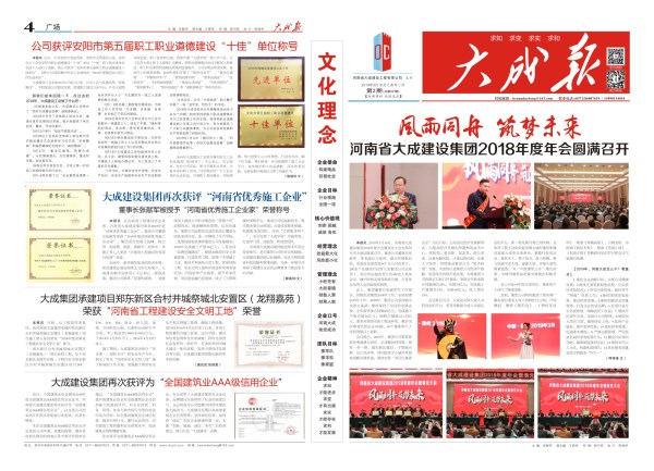 "中國建筑業最具成長性百強企業"、"全國優秀施工企業"、"河南省建筑業綜合實力前20強"、全國建筑業精品網站