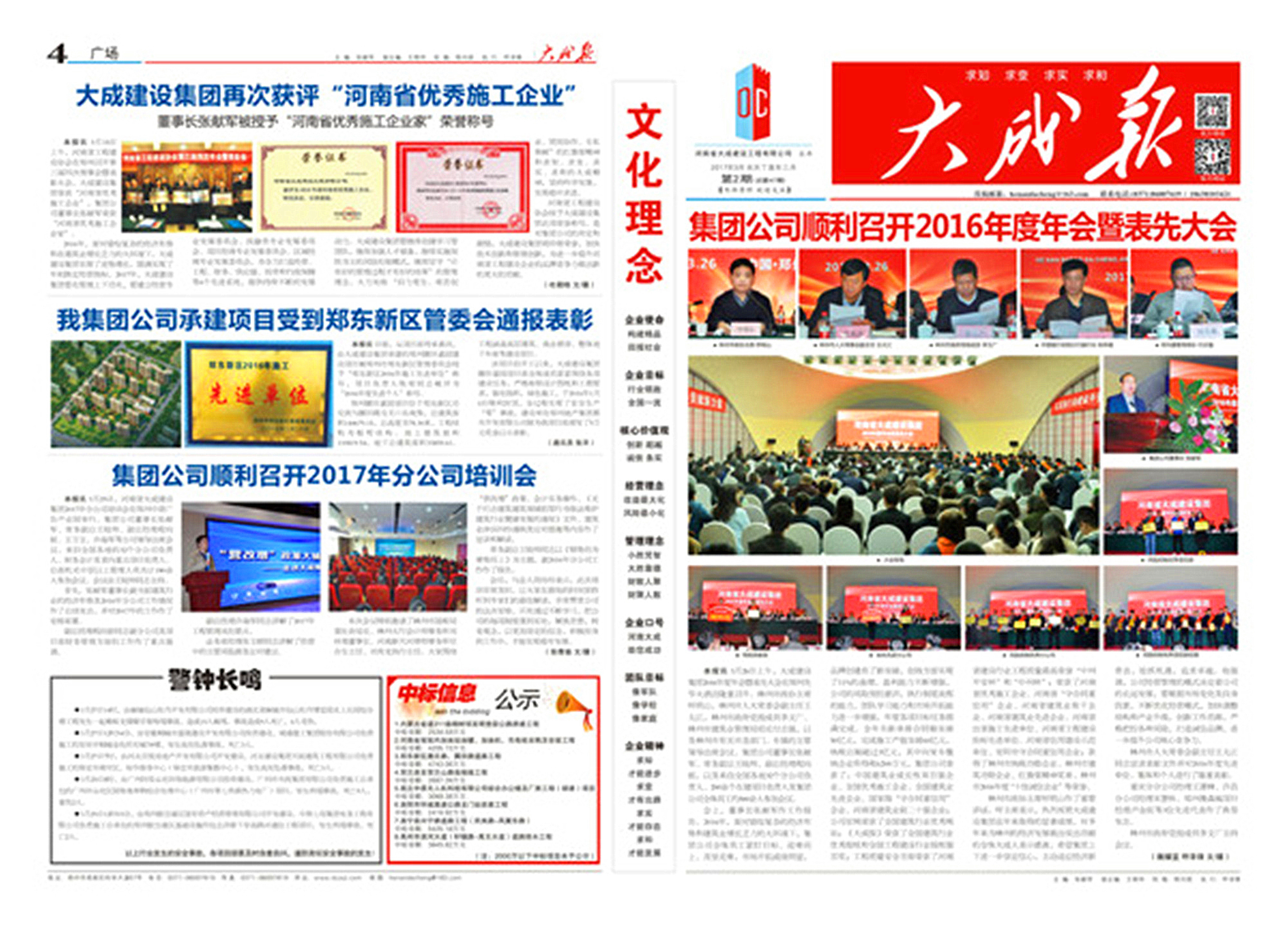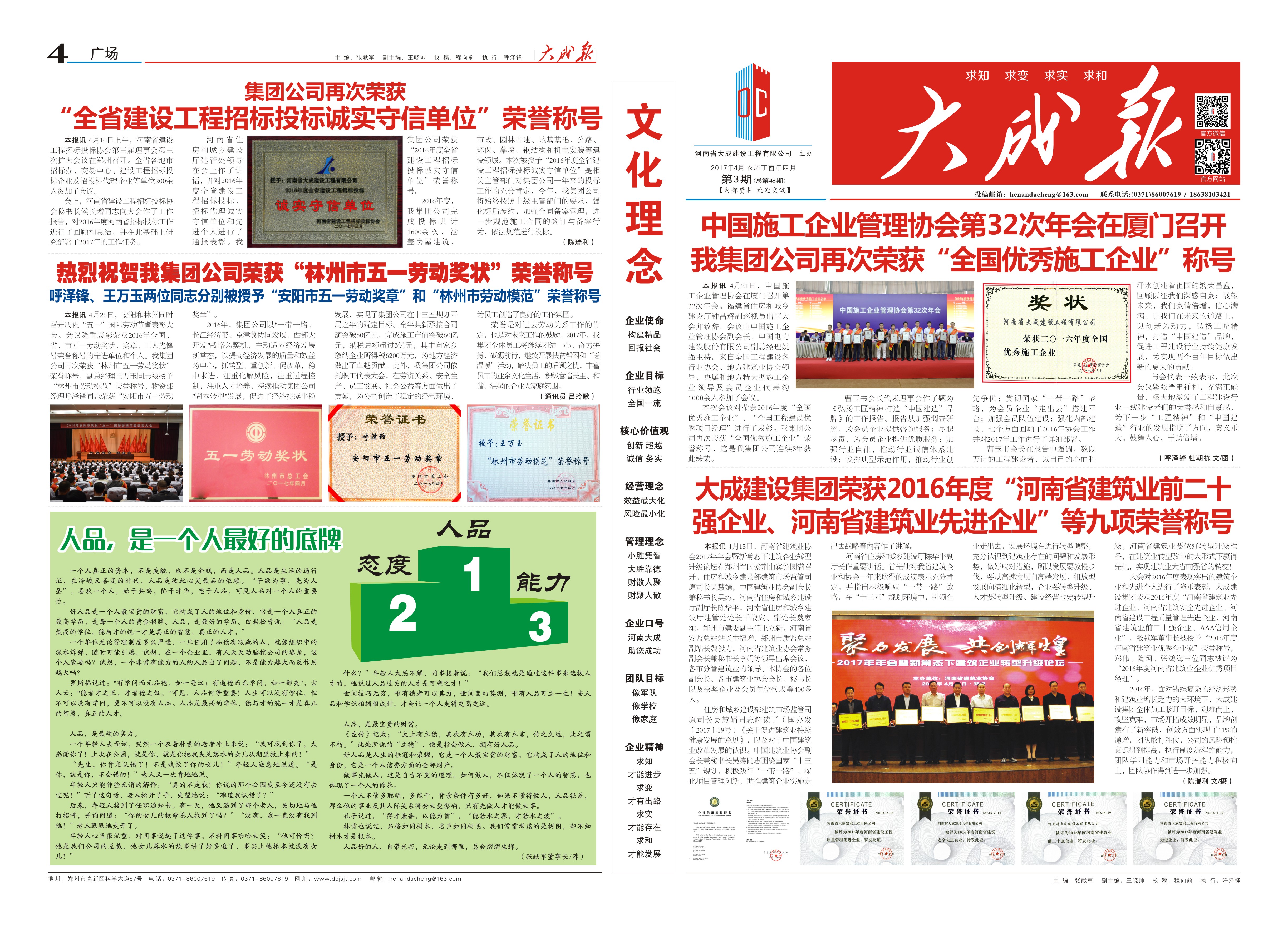 • "中國(guó)建筑業(yè)最具成長(zhǎng)性百?gòu)?qiáng)企業(yè)"、"全國(guó)優(yōu)秀施工企業(yè)"、"河南省建筑業(yè)綜合實(shí)力前20強(qiáng)"、全國(guó)建筑業(yè)精品網(wǎng)站