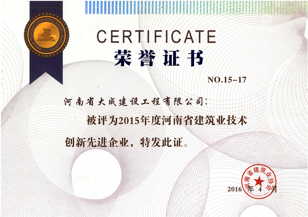 "中國建筑業最具成長性百強企業"、"全國優秀施工企業"、"河南省建筑業綜合實力前20強"、全國建筑業精品網站