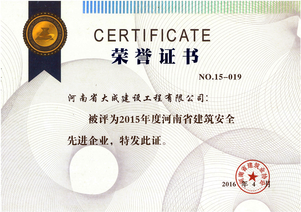 "中國建筑業最具成長性百強企業"、"全國優秀施工企業"、"河南省建筑業綜合實力前20強"、全國建筑業精品網站