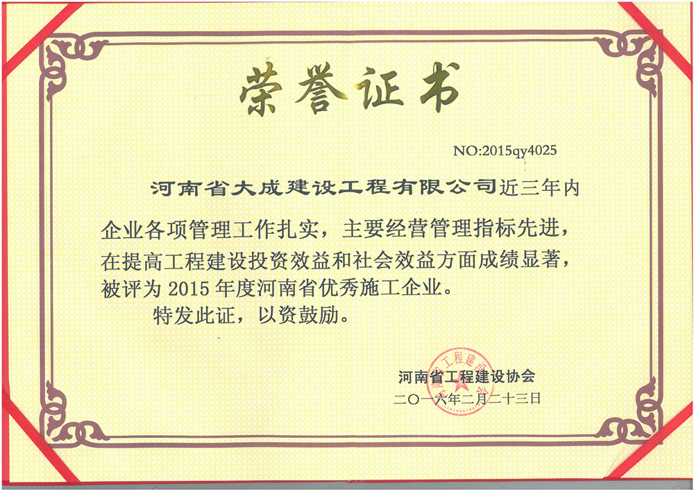 "中國建筑業最具成長性百強企業"、"全國優秀施工企業"、"河南省建筑業綜合實力前20強"、全國建筑業精品網站