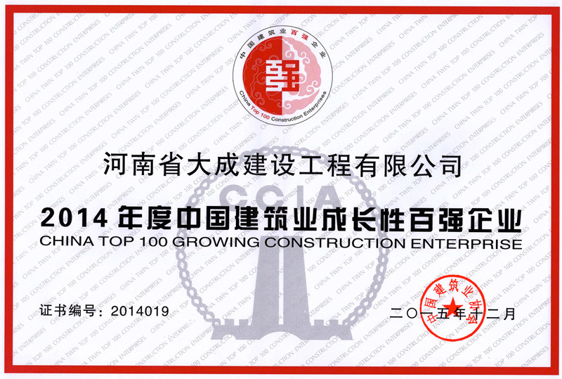 "中國建筑業最具成長性百強企業"、"全國優秀施工企業"、"河南省建筑業綜合實力前20強"、全國建筑業精品網站